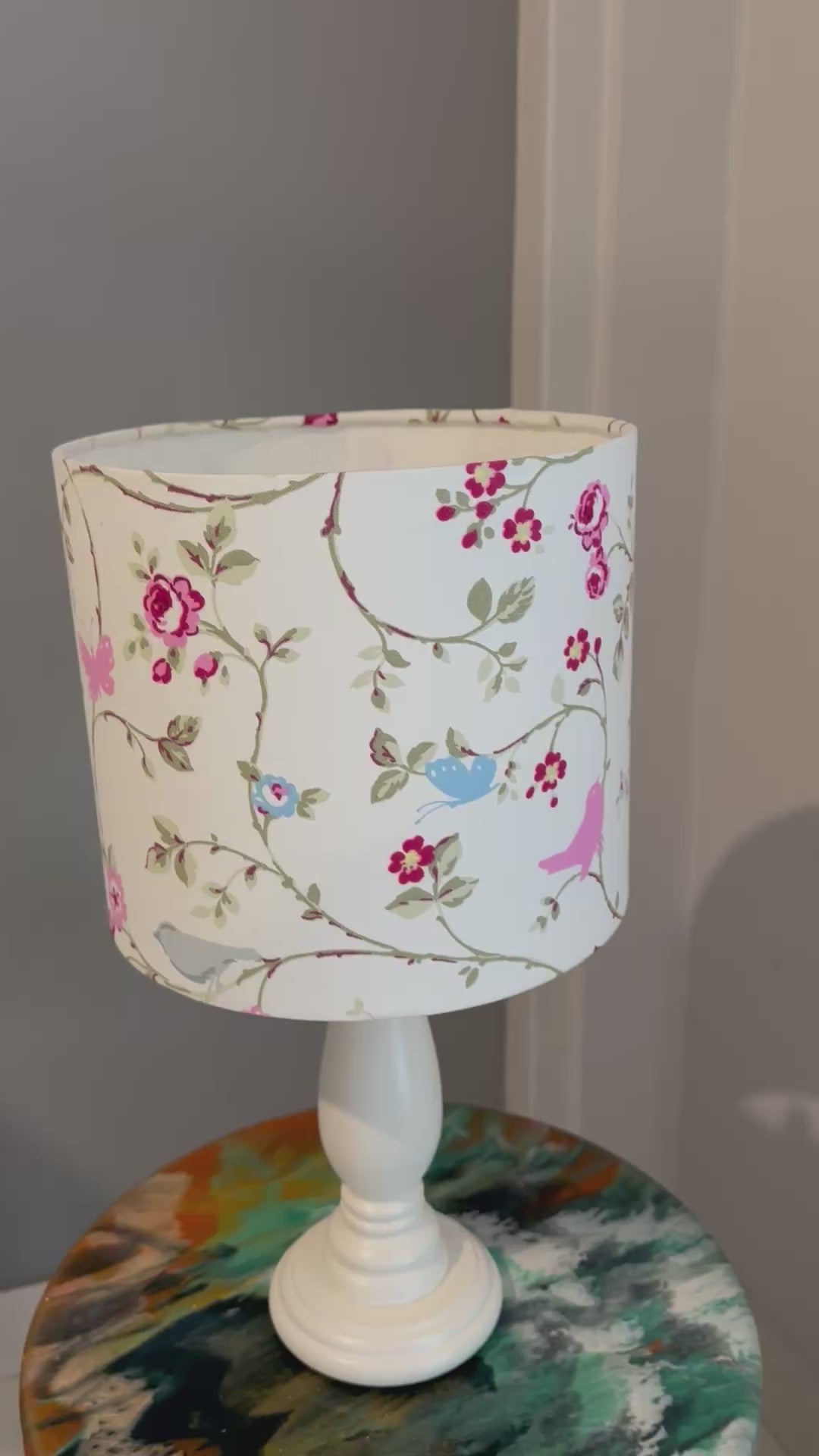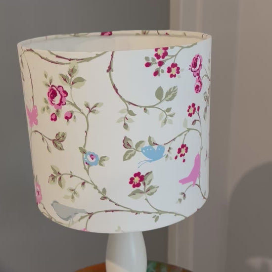 Crafted from the exquisite Bird Trail fabric by Clarke & Clarke, this lampshade showcases a delicate botanical design, bringing a refined and artistic touch to any space. The intricate pattern of birds and foliage creates a harmonious balance between classic charm and contemporary style.
