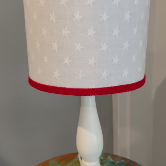 Finished with an embellished red trim, this lampshade adds a striking contrast, enhancing its refined charm. With dimensions of 26 cm in diameter and 23 cm in height, it offers a gentle, ambient glow, bringing a touch of celestial beauty to any space.