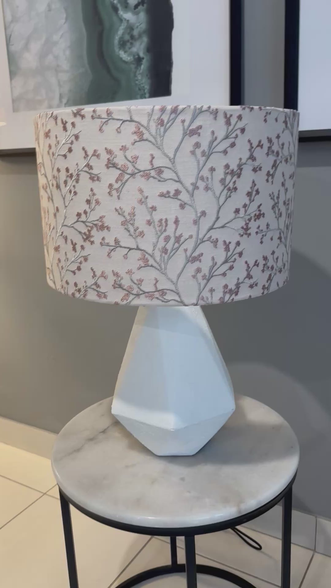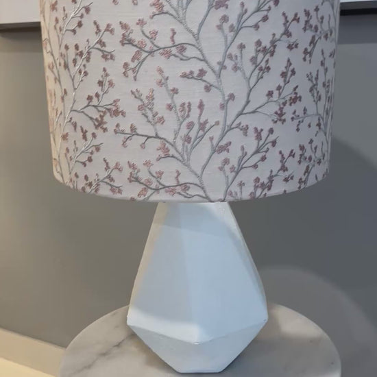 Crafted from luxurious fabric imported from the UK, this 40cm (diameter) x 25cm (height) drum shade features delicate embroidery in a soft blush tone—perfect for creating a serene and romantic ambiance in any space.