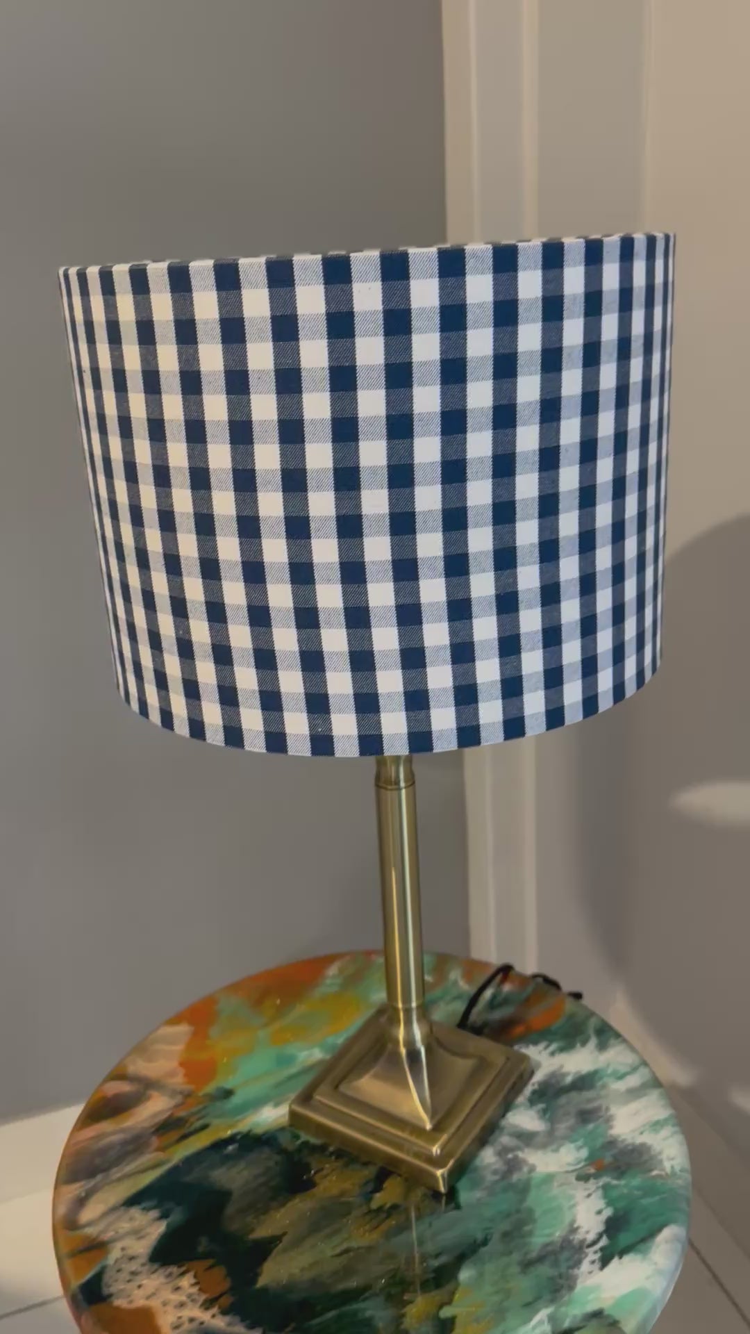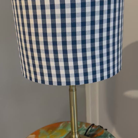 Crafted from premium Warwick fabric, the Gingham Radiance lampshade showcases a striking navy gingham pattern, paired with a vibrant yellow lining for a dynamic contrast. Its modern and lively design brings a fresh, sophisticated touch to any space, effortlessly blending classic charm with contemporary elegance.