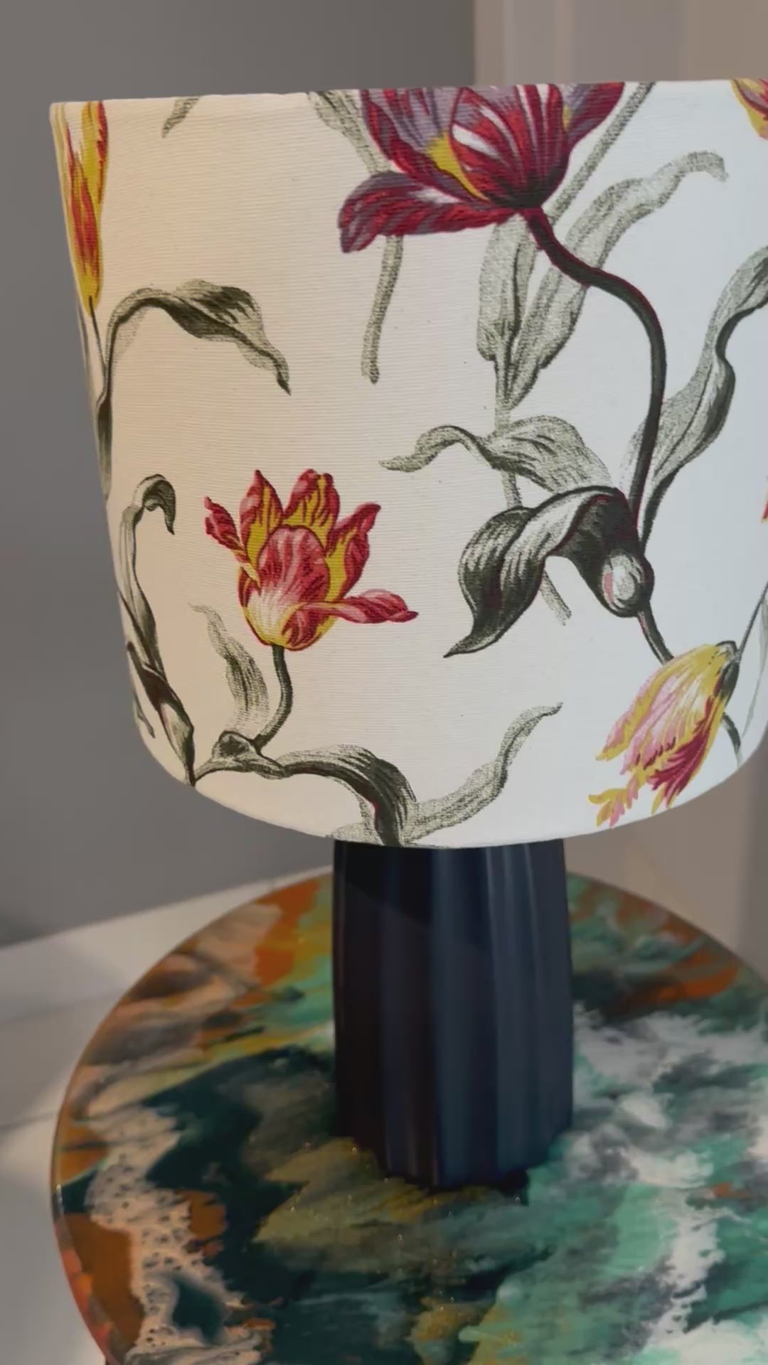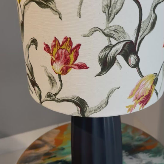 Inspired by the graceful movement of dancing tulips, the Istanbul lampshade captures the essence of nature’s rhythm with its stunning blend of earthy orange, green, and yellow hues. The flowing botanical design evokes a sense of elegance and vibrancy, making it a striking addition to any space.