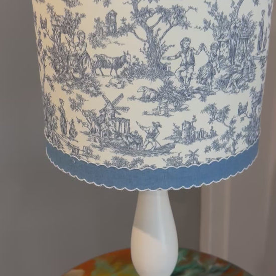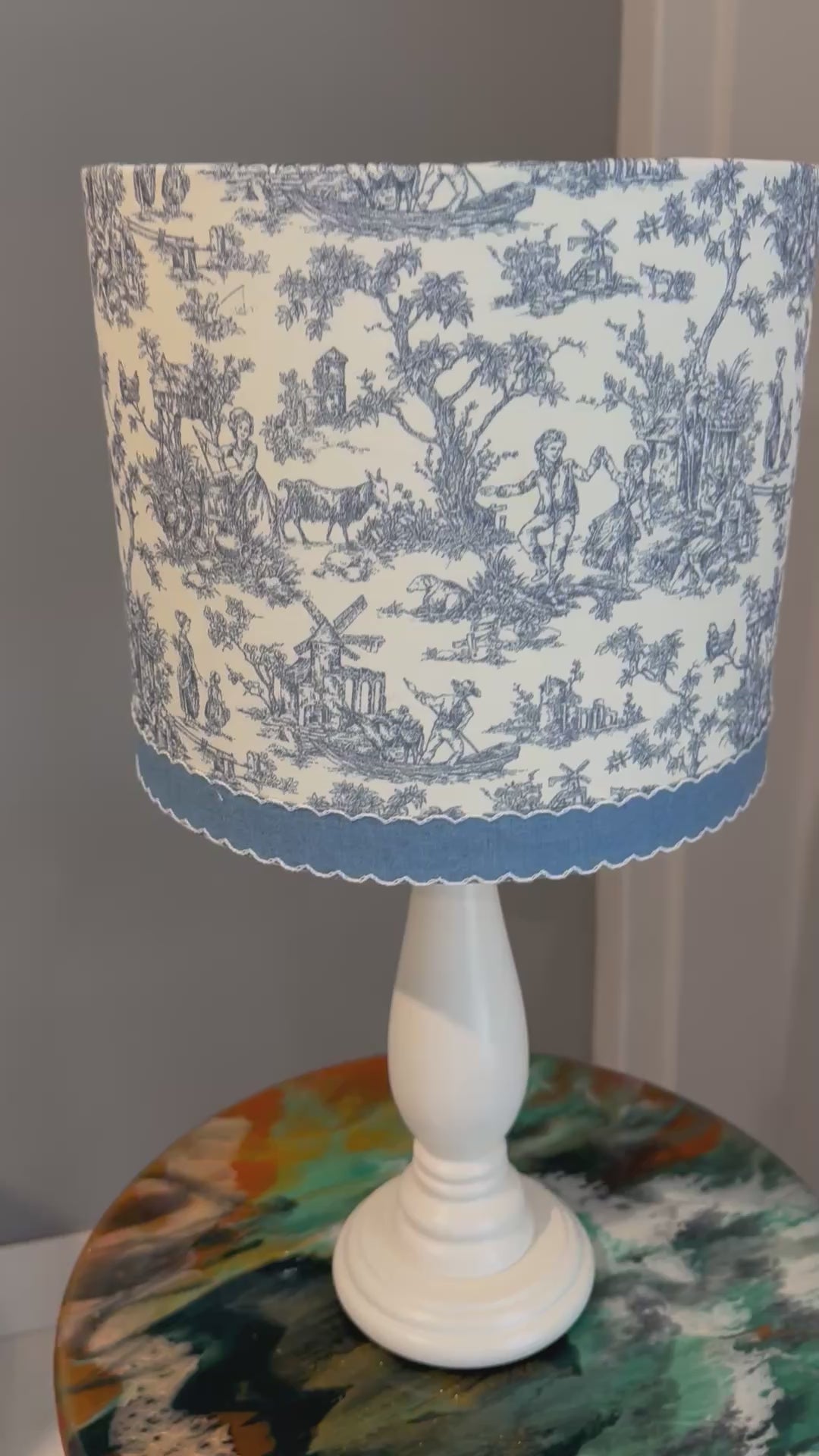 Toile French Drum Lampshade – Classic Elegance with French Trim