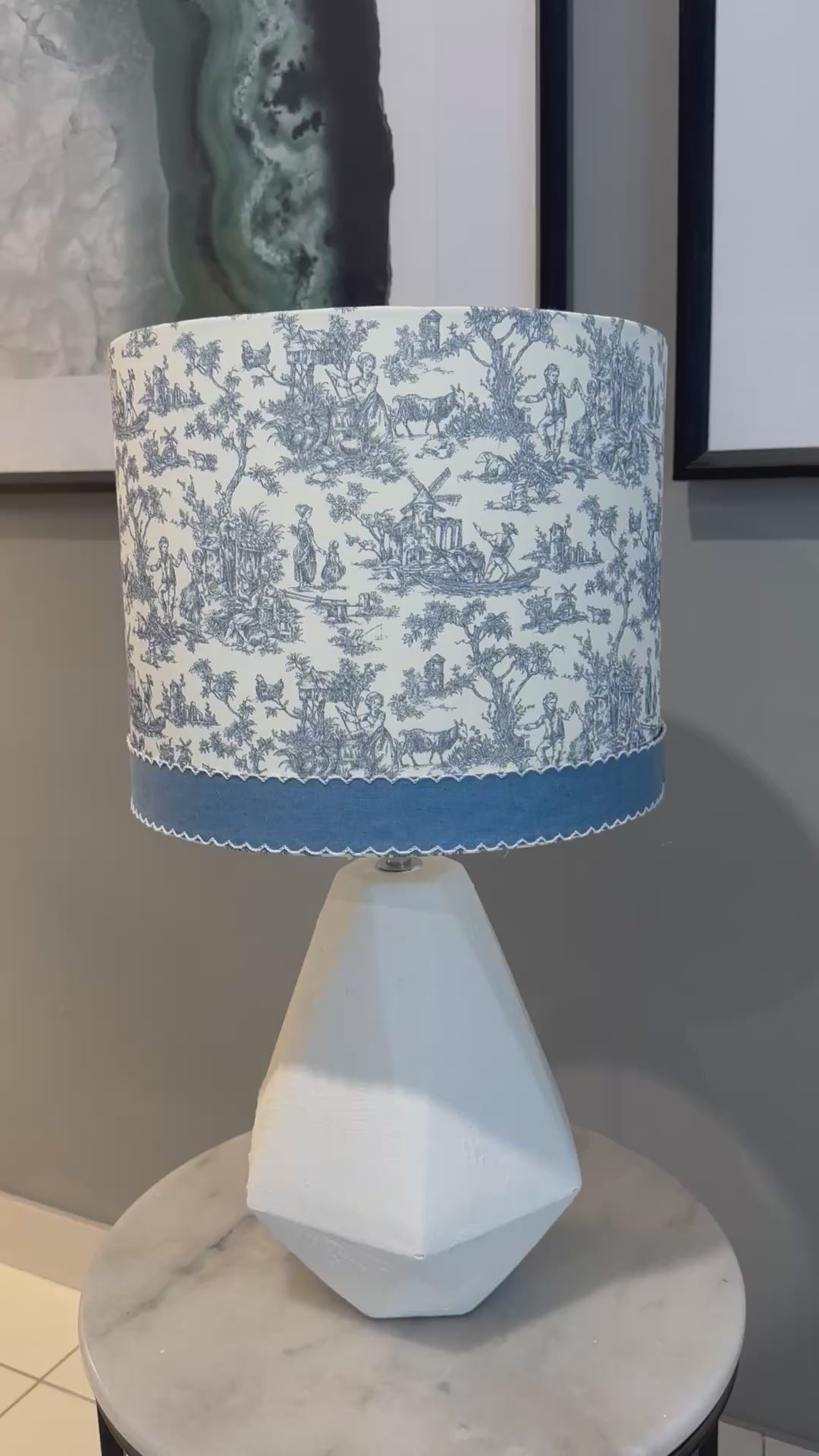 Toile French Drum Lampshade – Classic Elegance with French Trim